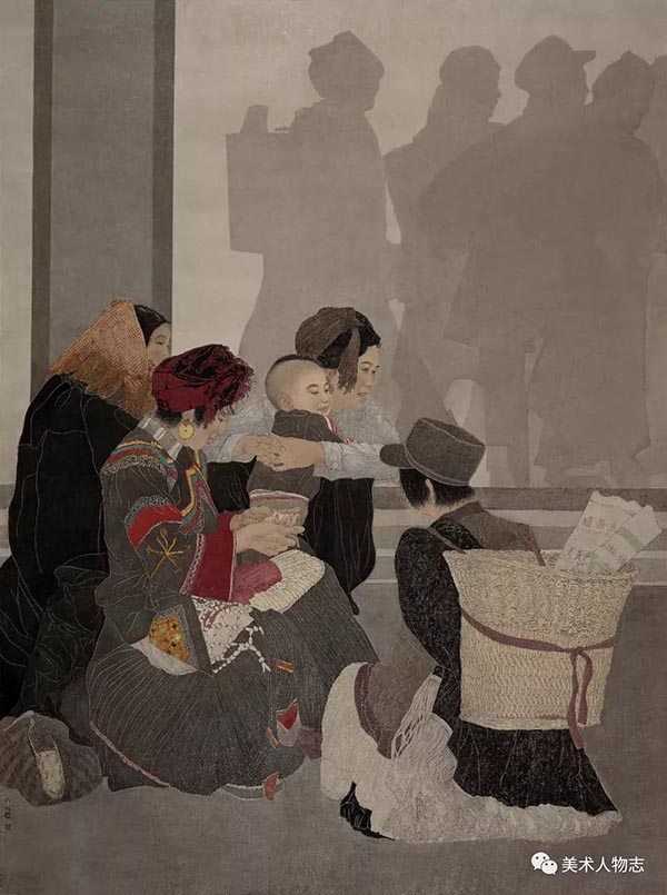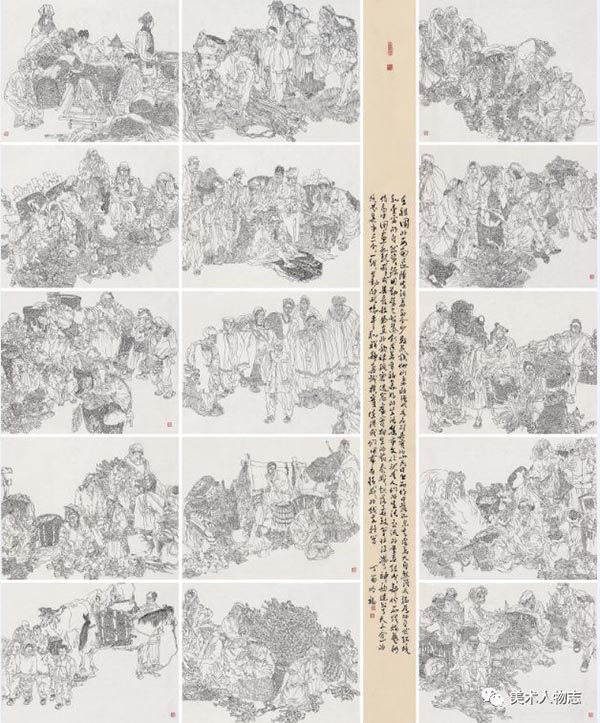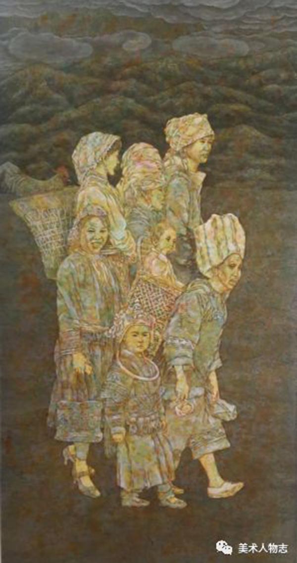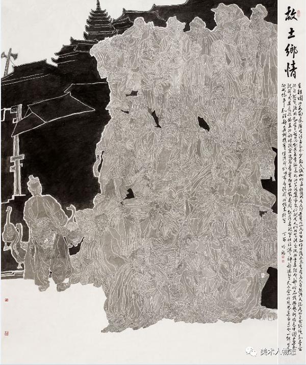2017年中国美术家协会主办“万年浦江”全国中国画人物作品展其线描作品《赶集》入选